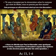 En ces jours-là, des gens, venus de Judée à Antioche, enseignaient les frères en disant : « Si vous n’acceptez pas la circoncision selon la coutume qui vient de Moïse, vous ne pouvez pas être sauvés. »