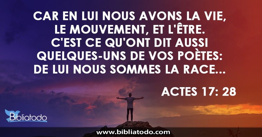 Car c’est en lui que nous avons la vie, le mouvement et l’être. Ainsi l’ont également dit certains de vos poètes : ‘Nous sommes de sa descendance.’