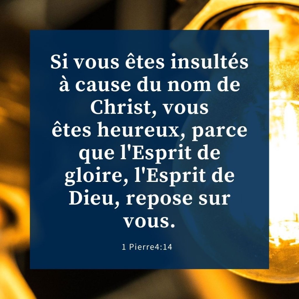 Si l’on vous insulte pour le nom du Christ, heureux êtes-vous, parce que l’Esprit de gloire, l’Esprit de Dieu, repose sur vous.