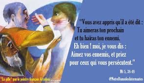 En ce temps- là, Jésus disait à ses disciples : « Vous avez appris qu’il a été dit : ‘Œil pour œil, et dent pour dent’.