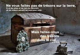 Mais faites-vous des trésors dans le ciel, là où il n’y a pas de mites ni de vers qui dévorent, pas de voleurs qui percent les murs pour voler.