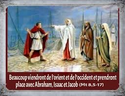 Aussi je vous le dis : Beaucoup viendront de l’orient et de l’occident et prendront place avec Abraham, Isaac et Jacob au festin du royaume des Cieux,