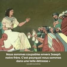 et ils se disaient l’un à l’autre : « Hélas ! nous sommes coupables envers Joseph notre frère : nous avons vu dans quelle détresse il se trouvait quand il nous suppliait, et nous ne l’avons pas écouté. C’est pourquoi nous sommes maintenant dans une telle détresse. »