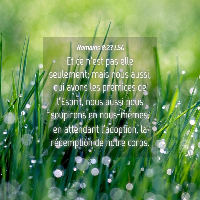Et elle n’est pas seule. Nous aussi, en nous-mêmes, nous gémissons ; nous avons commencé à recevoir l’Esprit Saint, mais nous attendons notre adoption et la rédemption de notre corps.