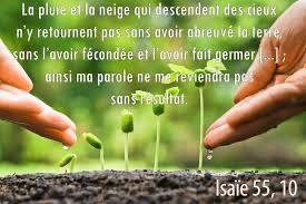 « La pluie et la neige qui descendent des cieux n’y retournent pas sans avoir abreuvé la terre, sans l’avoir fécondée et l’avoir fait germer, donnant la semence au semeur et le pain à celui qui doit manger ;