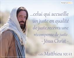 qui accueille un homme juste en sa qualité de juste recevra une récompense de juste.
