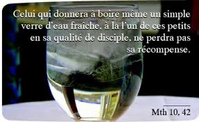 Et celui qui donnera à boire, même un simple verre d’eau fraîche, à l’un de ces petits en sa qualité de disciple, amen, je vous le dis : non, il ne perdra pas sa récompense. »