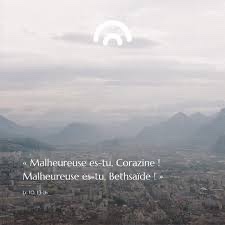 « Malheureuse es-tu, Corazine ! Malheureuse es-tu, Bethsaïde ! Car, si les miracles qui ont eu lieu chez vous avaient eu lieu à Tyr et à Sidon, ces villes, autrefois, se seraient converties sous le sac et la cendre.