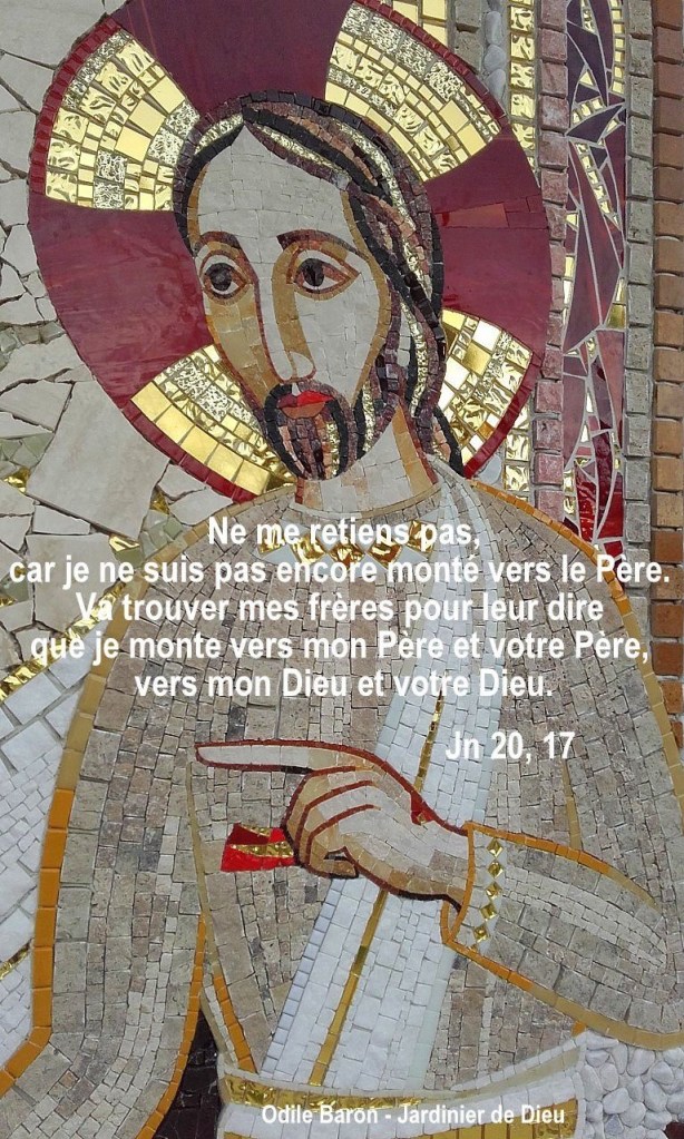 Jésus reprend : « Ne me retiens pas, car je ne suis pas encore monté vers le Père. Va trouver mes frères pour leur dire que je monte vers mon Père et votre Père, vers mon Dieu et votre Dieu. »