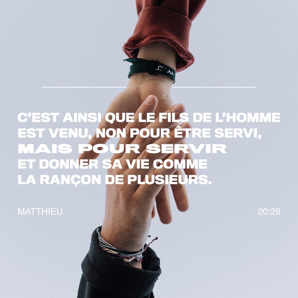 Ainsi, le Fils de l’homme n’est pas venu pour être servi, mais pour servir, et donner sa vie en rançon pour la multitude. »