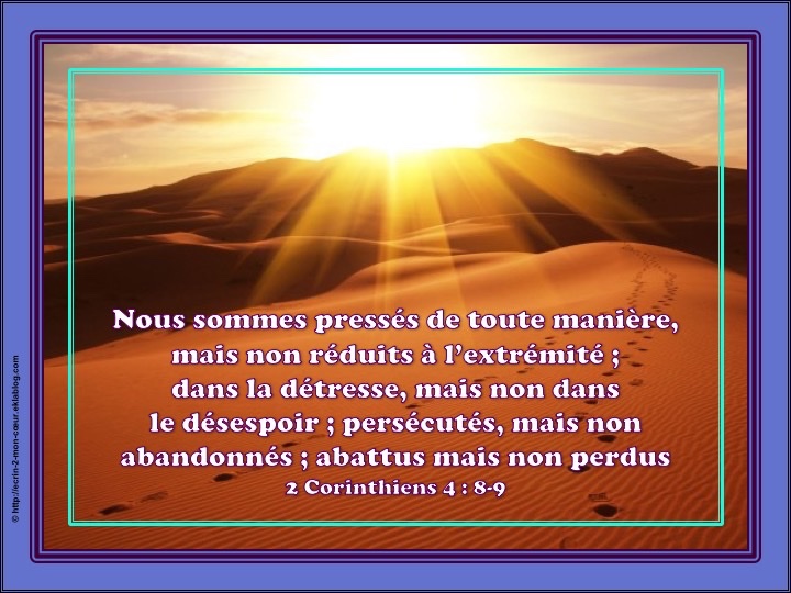 nous sommes pourchassés, mais non pas abandonnés ; terrassés, mais non pas anéantis.