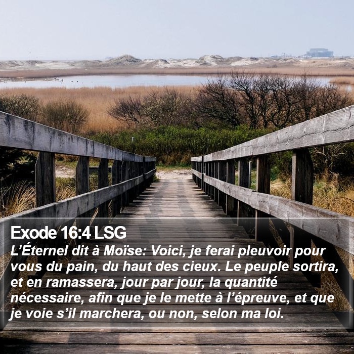 Le Seigneur dit à Moïse : « Voici que, du ciel, je vais faire pleuvoir du pain pour vous. Le peuple sortira pour recueillir chaque jour sa ration quotidienne, et ainsi je vais le mettre à l’épreuve : je verrai s’il marchera, ou non, selon ma loi.