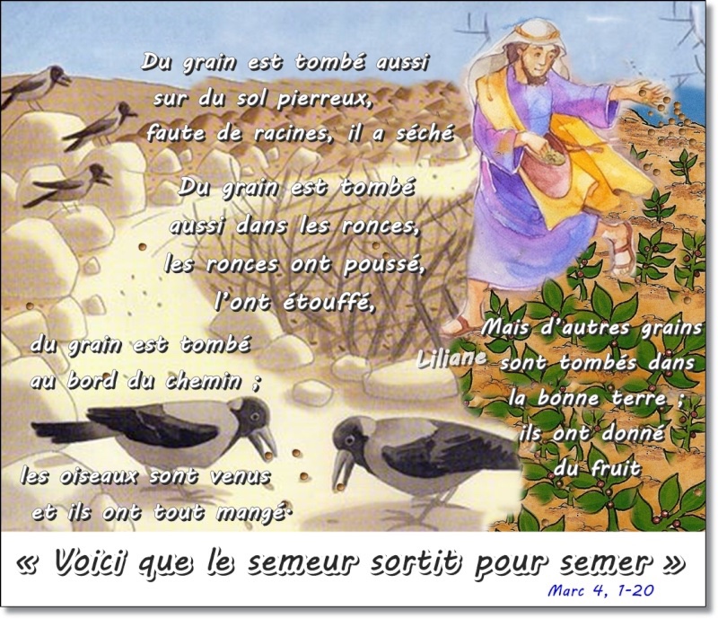 Comme il semait, des grains sont tombés au bord du chemin, et les oiseaux sont venus tout manger.