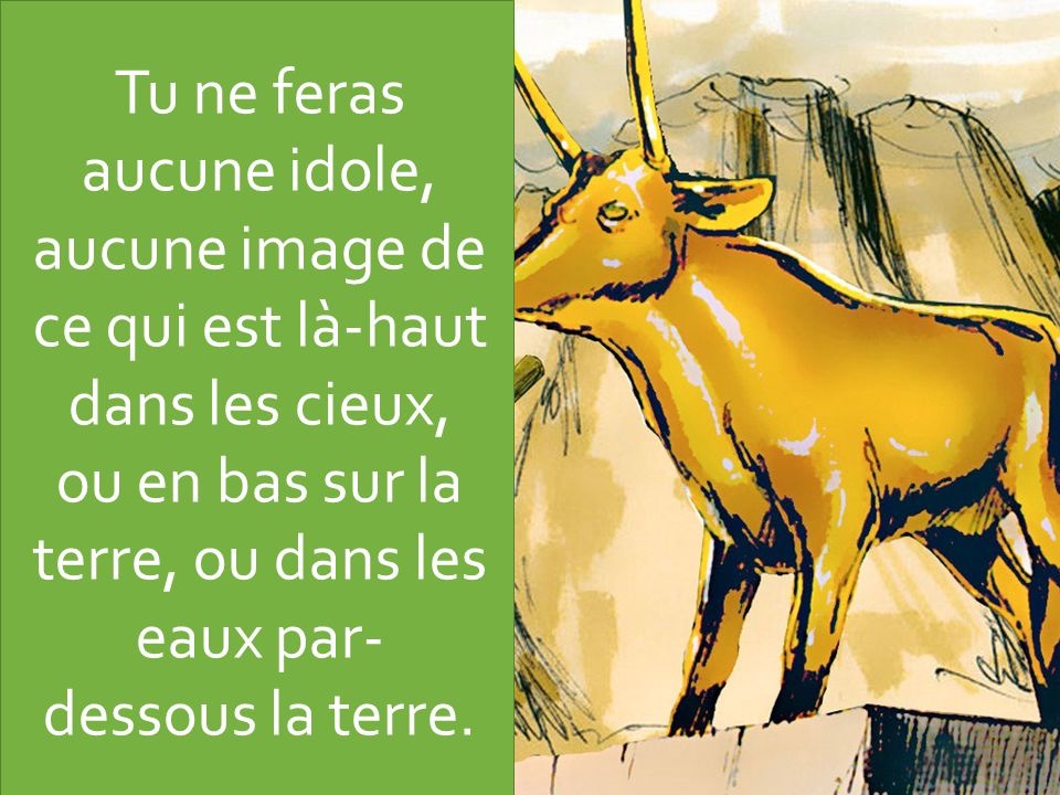 Tu ne feras aucune idole, aucune image de ce qui est là-haut dans les cieux, ou en bas sur la terre, ou dans les eaux par-dessous la terre.