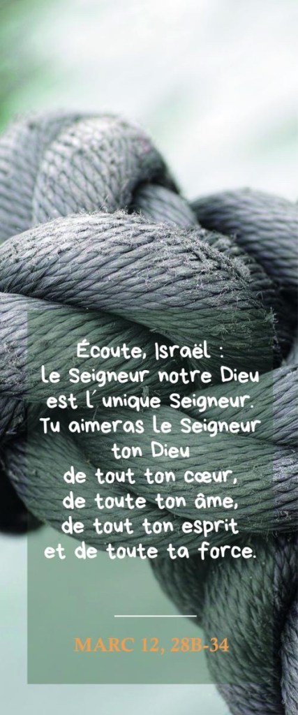Tu aimeras le Seigneur ton Dieu de tout ton cœur, de toute ton âme et de toute ta force.