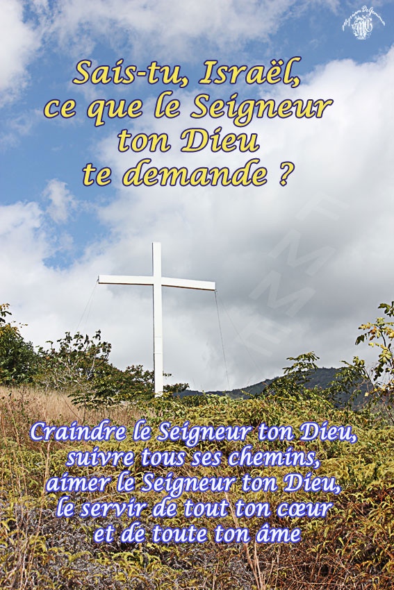 « Maintenant, sais-tu, Israël, ce que le Seigneur ton Dieu te demande ? Craindre le Seigneur ton Dieu, suivre tous ses chemins, aimer le Seigneur ton Dieu, le servir de tout ton cœur et de toute ton âme,