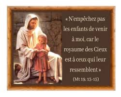 Jésus leur dit : « Laissez les enfants, ne les empêchez pas de venir à moi, car le royaume des Cieux est à ceux qui leur ressemblent. »
