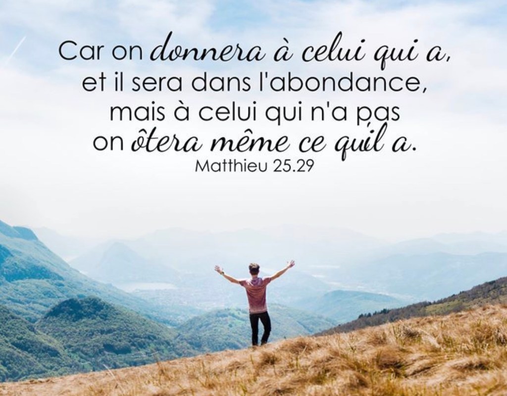 À celui qui a, on donnera encore, et il sera dans l’abondance ; mais celui qui n’a rien se verra enlever même ce qu’il a.