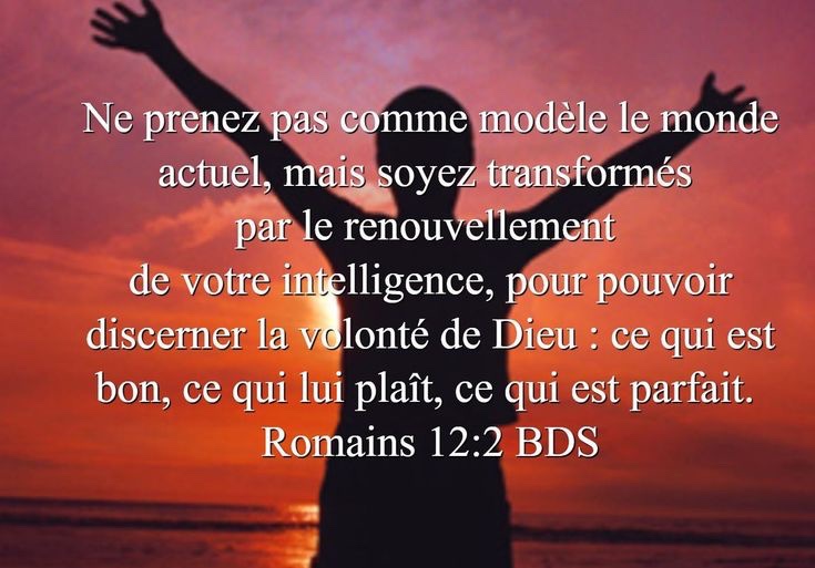 Ne prenez pas pour modèle le monde présent, mais transformez-vous en renouvelant votre façon de penser pour discerner quelle est la volonté de Dieu : ce qui est bon, ce qui est capable de lui plaire, ce qui est parfait.