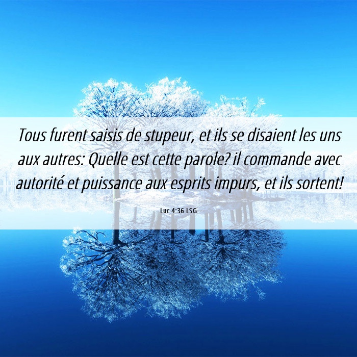 Tous furent saisis d’effroi et ils se disaient entre eux : « Quelle est cette parole ? Il commande avec autorité et puissance aux esprits impurs, et ils sortent ! »