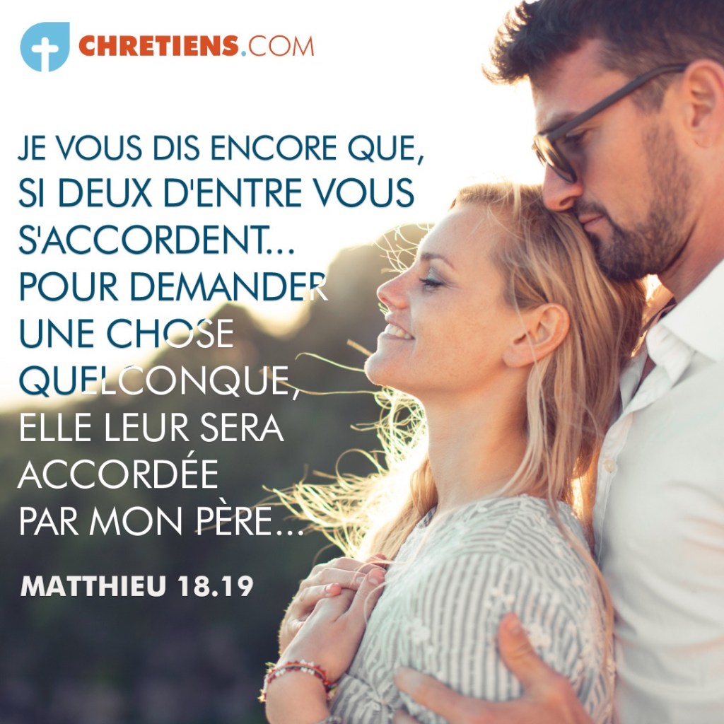 Et pareillement, amen, je vous le dis, si deux d’entre vous sur la terre se mettent d’accord pour demander quoi que ce soit, ils l’obtiendront de mon Père qui est aux cieux.