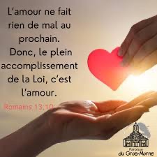 L’amour ne fait rien de mal au prochain. Donc, le plein accomplissement de la Loi, c’est l’amour.