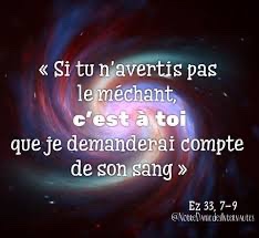 Si je dis au méchant : “Tu vas mourir”, et que tu ne l’avertis pas, si tu ne lui dis pas d’abandonner sa conduite mauvaise, lui, le méchant, mourra de son péché, mais à toi, je demanderai compte de son sang.