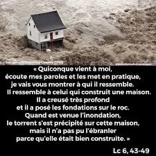 Il ressemble à celui qui construit une maison. Il a creusé très profond et il a posé les fondations sur le roc. Quand est venue l’inondation, le torrent s’est précipité sur cette maison, mais il n’a pas pu l’ébranler parce qu’elle était bien construite.