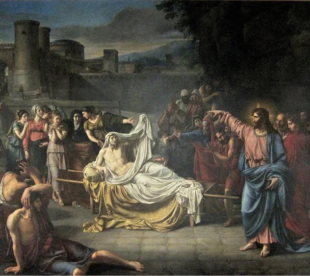 Il s’approcha et toucha le cercueil ; les porteurs s’arrêtèrent, et Jésus dit : « Jeune homme, je te l’ordonne, lève-toi. »