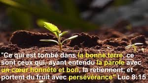 Et ce qui est tombé dans la bonne terre, ce sont les gens qui ont entendu la Parole dans un cœur bon et généreux, qui la retiennent et portent du fruit par leur persévérance. »