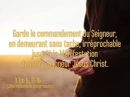 garde le commandement du Seigneur, en demeurant sans tache, irréprochable jusqu’à la Manifestation de notre Seigneur Jésus Christ.