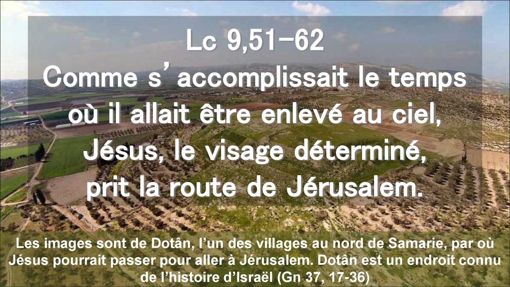 Comme s’accomplissait le temps où il allait être enlevé au ciel, Jésus, le visage déterminé, prit la route de Jérusalem.