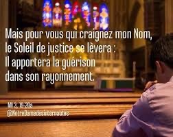 Mais pour vous qui craignez mon nom, le Soleil de justice se lèvera : il apportera la guérison dans son rayonnement. »