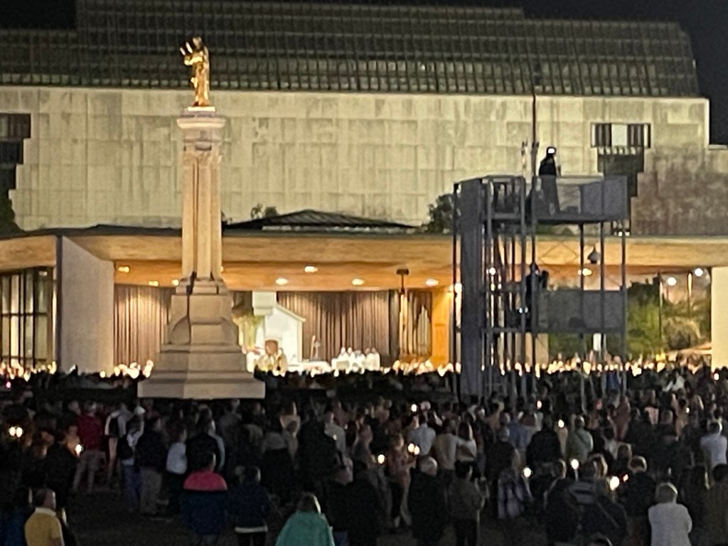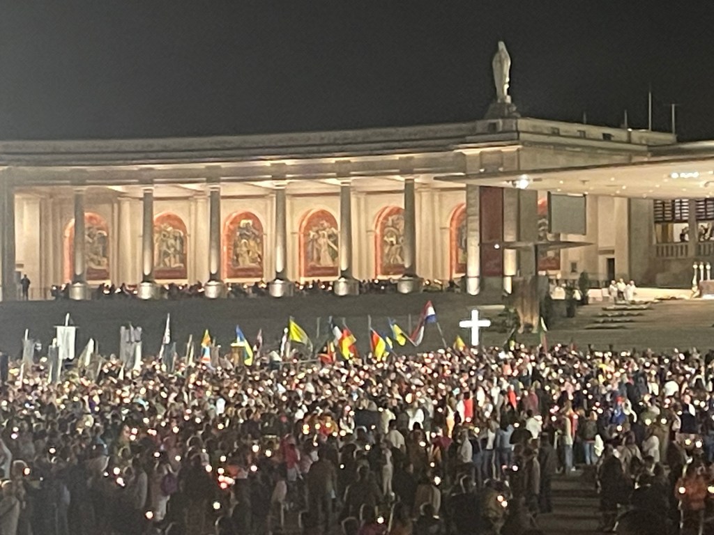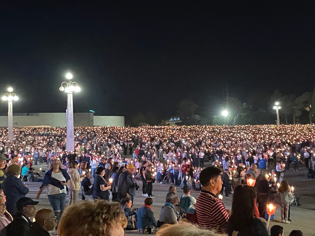 Et le soir, dès 21h30, le Rosaire sur une place du Sanctuaire bondée…