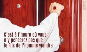 Vous aussi, tenez-vous prêts : c’est à l’heure où vous n’y penserez pas que le Fils de l’homme viendra. »