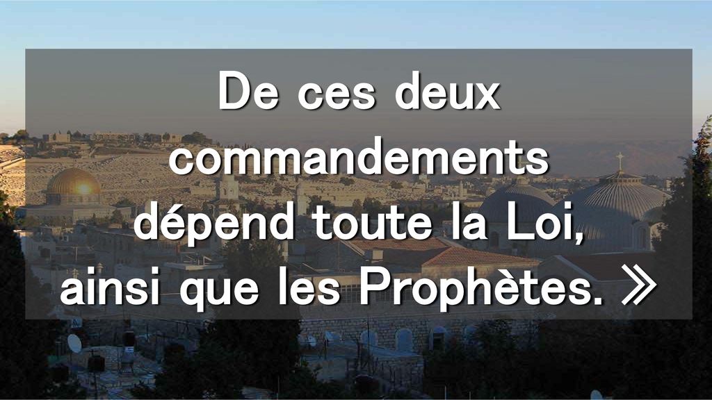 De ces deux commandements dépend toute la Loi, ainsi que les Prophètes. »