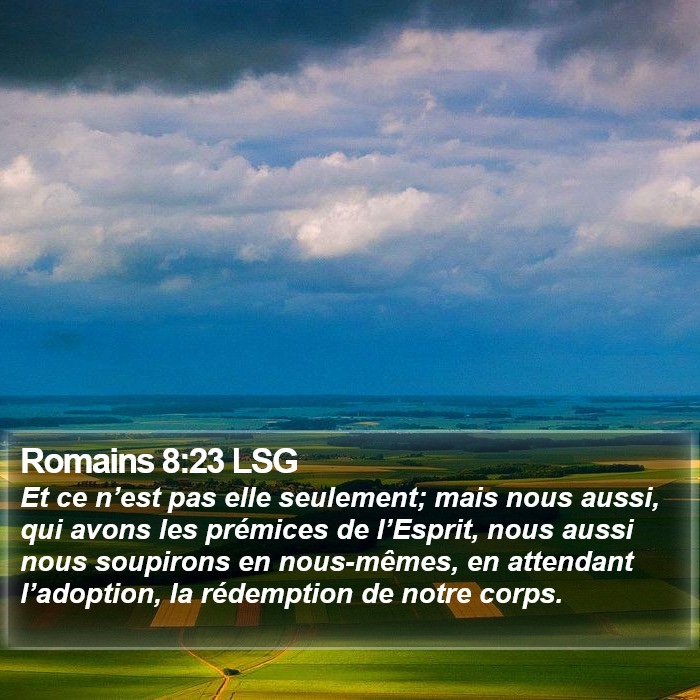 Et elle n’est pas seule. Nous aussi, en nous-mêmes, nous gémissons ; nous avons commencé à recevoir l’Esprit Saint, mais nous attendons notre adoption et la rédemption de notre corps.