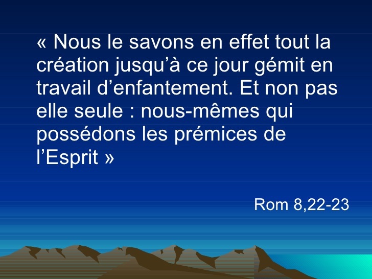 Nous le savons bien, la création tout entière gémit, elle passe par les douleurs d’un enfantement qui dure encore.