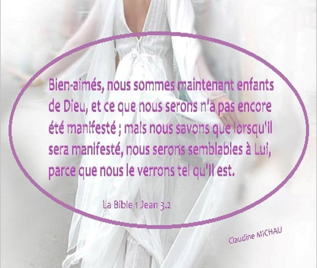 Bien-aimés, dès maintenant, nous sommes enfants de Dieu, mais ce que nous serons n’a pas encore été manifesté. Nous le savons : quand cela sera manifesté, nous lui serons semblables car nous le verrons tel qu’il est.