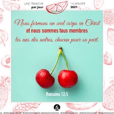 de même, nous qui sommes plusieurs, nous sommes un seul corps dans le Christ, et membres les uns des autres, chacun pour sa part.