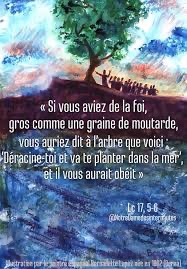 Le Seigneur répondit : « Si vous aviez de la foi, gros comme une graine de moutarde, vous auriez dit à l’arbre que voici : “Déracine-toi et va te planter dans la mer”, et il vous aurait obéi. »
