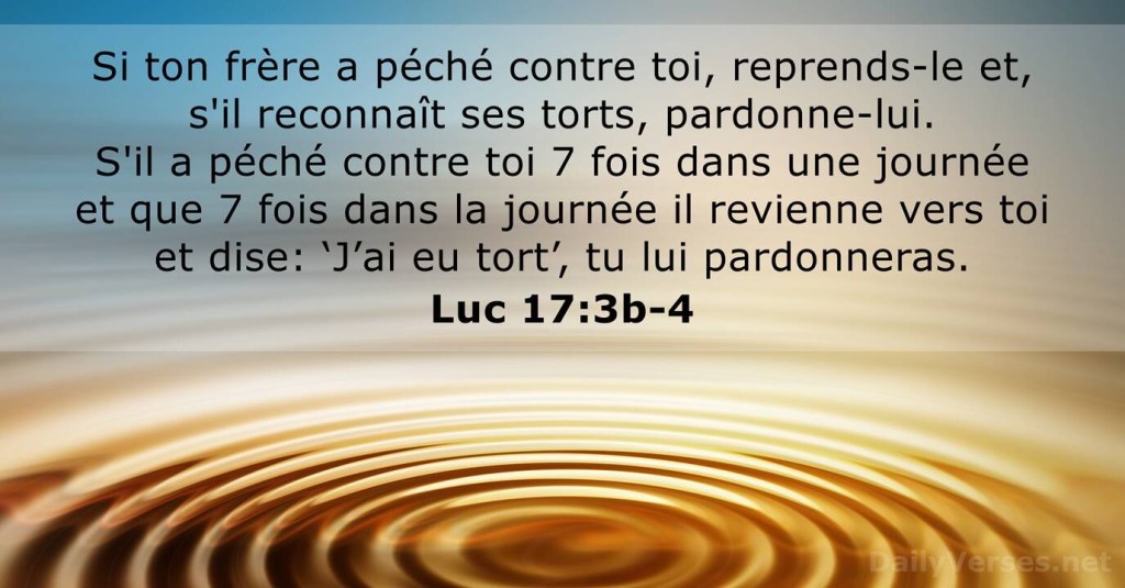 Même si sept fois par jour il commet un péché contre toi, et que sept fois de suite il revienne à toi en disant : “Je me repens”, tu lui pardonneras. »