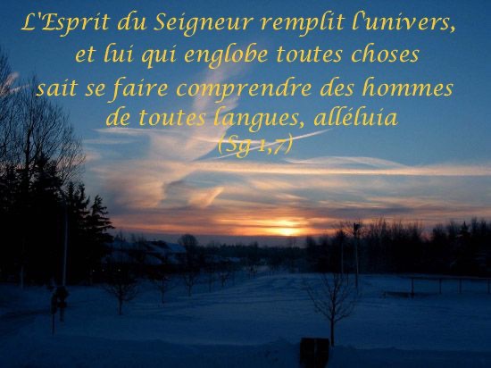 L’esprit du Seigneur remplit l’univers : lui qui tient ensemble tous les êtres, il entend toutes les voix.