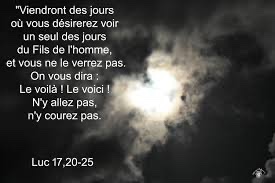 Puis il dit aux disciples : « Des jours viendront où vous désirerez voir un seul des jours du Fils de l’homme, et vous ne le verrez pas.