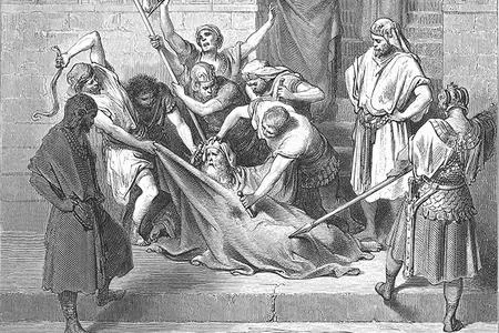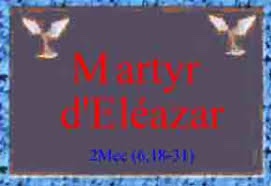 En ces jours-là, Éléazar était l’un des scribes les plus éminents. C’était un homme très âgé, et de très belle allure. On voulut l’obliger à manger du porc en lui ouvrant la bouche de force.
