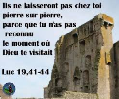 ils t’anéantiront, toi et tes enfants qui sont chez toi, et ils ne laisseront pas chez toi pierre sur pierre, parce que tu n’as pas reconnu le moment où Dieu te visitait. »