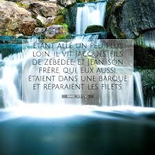 De là, il avança et il vit deux autres frères, Jacques, fils de Zébédée, et son frère Jean, qui étaient dans la barque avec leur père, en train de réparer leurs filets. Il les appela.