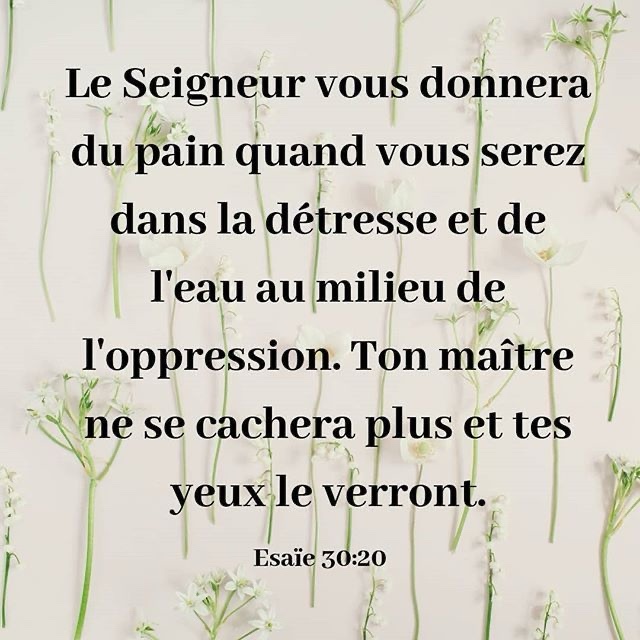 Le Seigneur te donnera du pain dans la détresse, et de l’eau dans l’épreuve. Celui qui t’instruit ne se dérobera plus et tes yeux le verront.