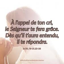 Peuple de Sion, toi qui habites Jérusalem, tu ne pleureras jamais plus. À l’appel de ton cri, le Seigneur te fera grâce. Dès qu’il t’aura entendu, il te répondra.