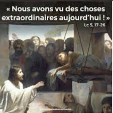 Tous furent saisis de stupeur et ils rendaient gloire à Dieu. Remplis de crainte, ils disaient : « Nous avons vu des choses extraordinaires aujourd’hui ! »